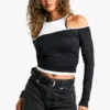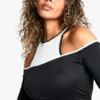 BOOHOO 2 Layer Contrast Binding Long Sleeve Top