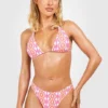 BOOHOO 3 Pack Geo Print Padded Bikini Set & Skirt