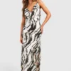 BOOHOO Abstract Beaded Chiffon Maxi Dress