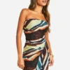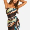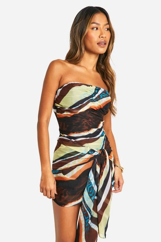 BOOHOO Abstract Chiffon Bandeau Tie Detail Mini Dress