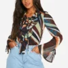 BOOHOO Abstract Chiffon Ruffle Blouse