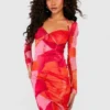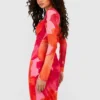 BOOHOO Abstract Floral Print Mesh Midi Dress