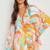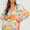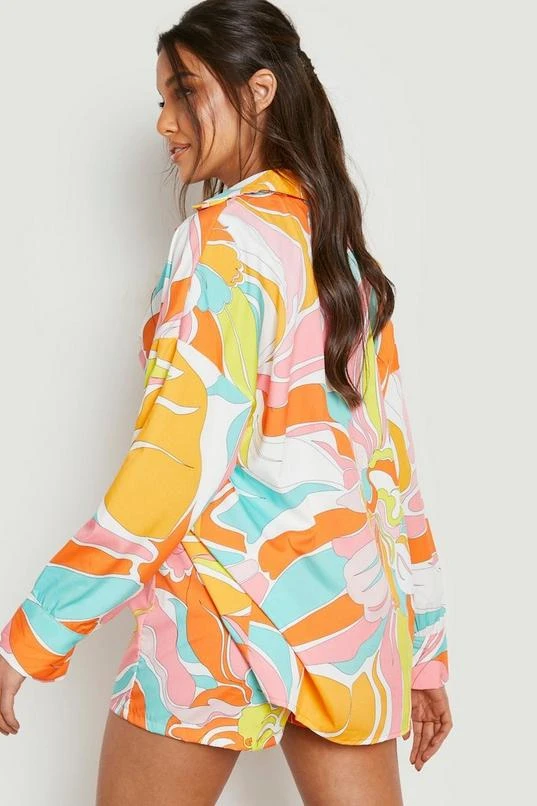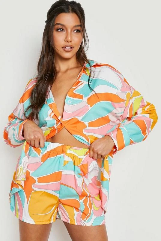BOOHOO Abstract Floral Print Tie Front Shirt & Shorts