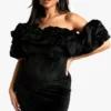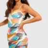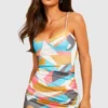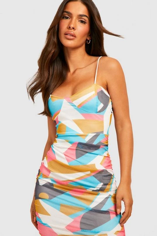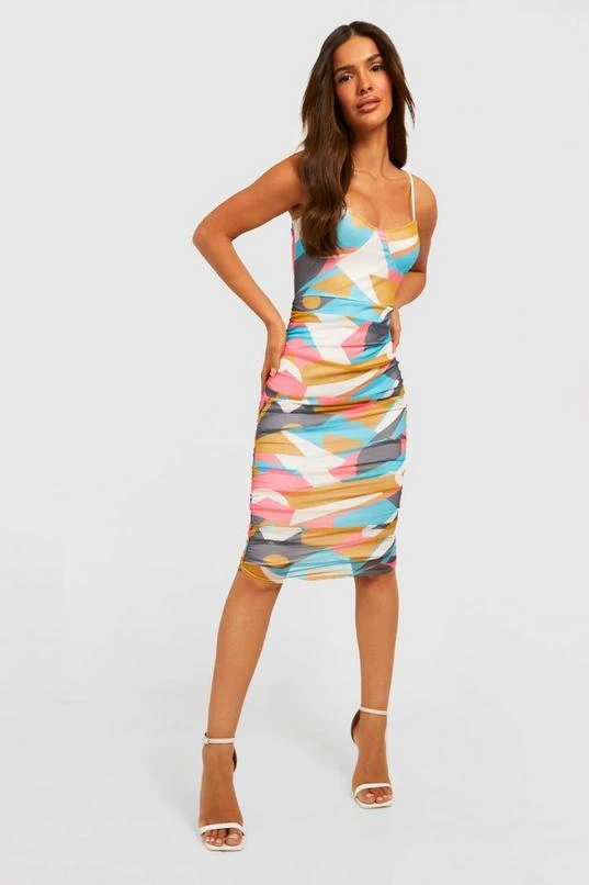 BOOHOO Abstract Mesh Corset Detail Ruched Midi Dress