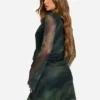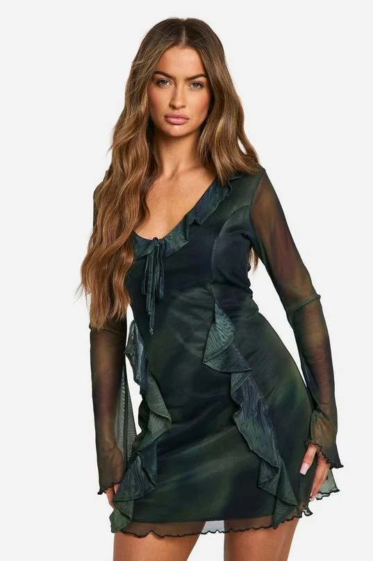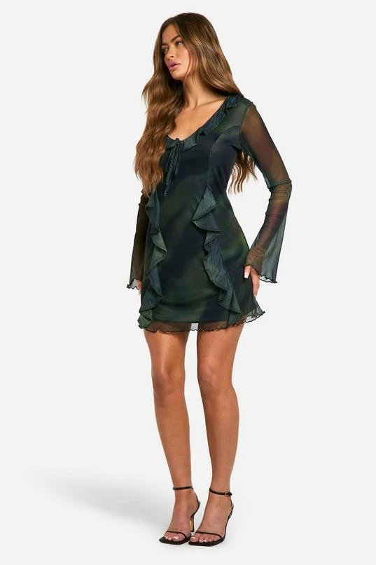 BOOHOO Abstract Mesh Flare Sleeve Mini Dress