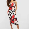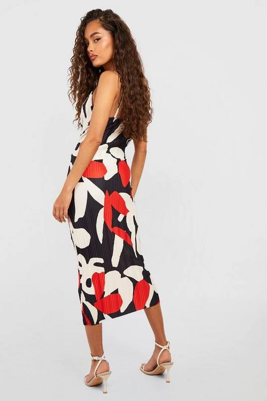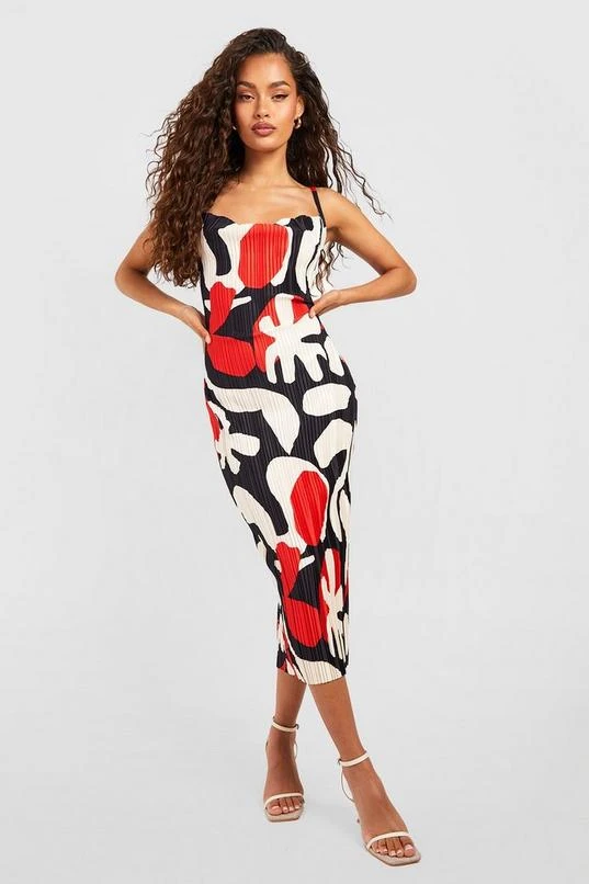 BOOHOO Abstract Plisse Strappy Midi Dress