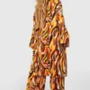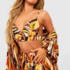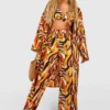 BOOHOO Abstract Print Kimono, Bralette & Wide Leg Pants