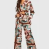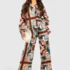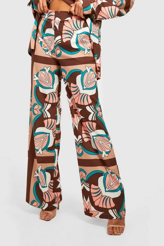 BOOHOO Abstract Print Relaxed Fit Wide Leg Pants