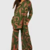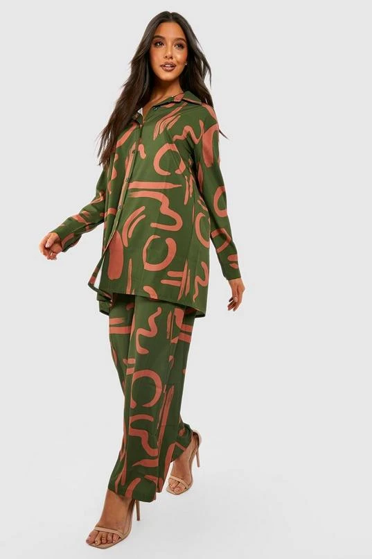 BOOHOO Abstract Print Shirt & Wide Leg Pants Set