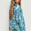 BOOHOO Abstract Print Tie Front Shirt & Shorts