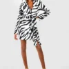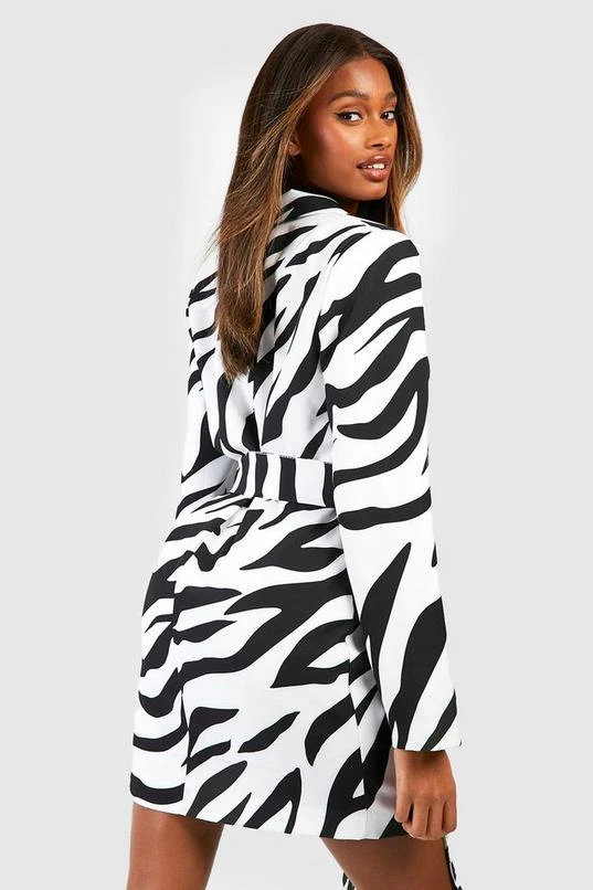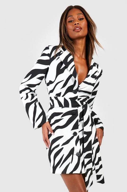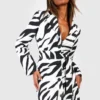 BOOHOO Abstract Print Tie Waist Blazer Dress