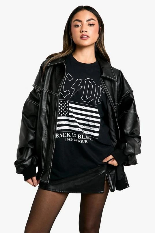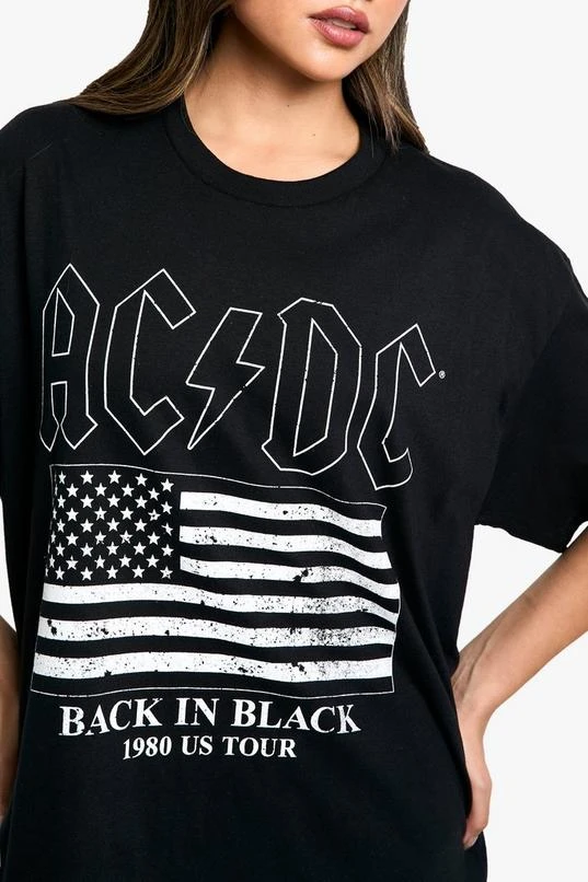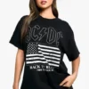 BOOHOO ACDC LICENSE PRINTED OVERSIZED GRAPHIC BAND TSHIRT