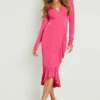 BOOHOO Acetate Slinky Ruffle Wrap Midi Dress