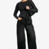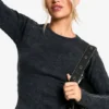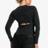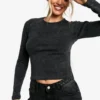 BOOHOO Acid Wash Back Cut Out Long Sleeve Top