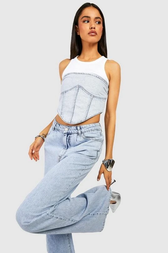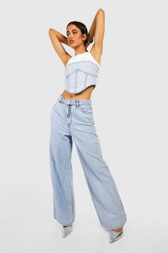 BOOHOO Acid Wash Seam Detail Wide Width Jeans