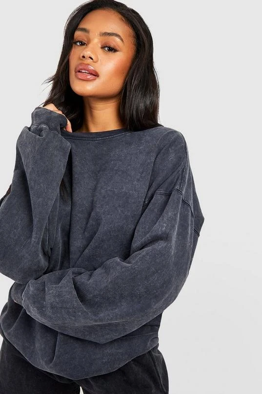 BOOHOO Acid Wash Sweatshirt Short Tracksuit