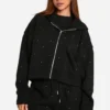 BOOHOO All Over Rhinestone Oversized Zip Through Hoodie