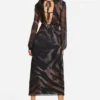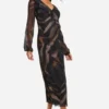 BOOHOO Animal Mesh Ruffle Midi Dress