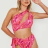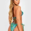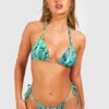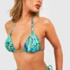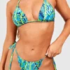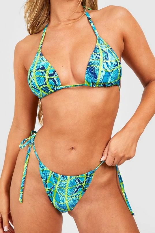 Cut shapes in this triangle bikini, the most popular style of bikini in women’s swimwear. This triangle string bikini is flattering for all shapes and sizes, featuring a triangle bikini top with padding inserts strung on thin straps and matching bottoms that tie at the side. With tie neck and back straps, you can style this triangle bikini in multiple ways, from halter-neck and criss-cross to bandeau and cross neck – the choice is yours.