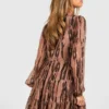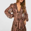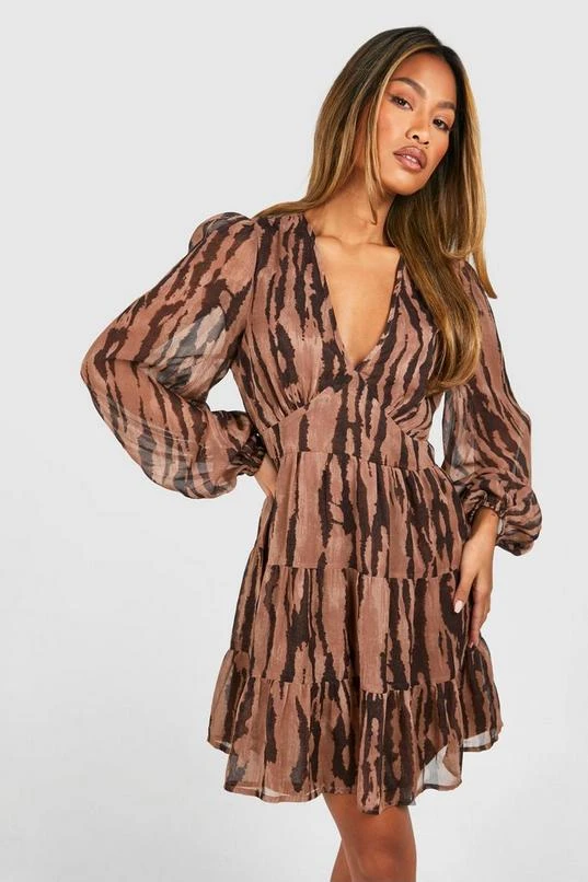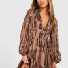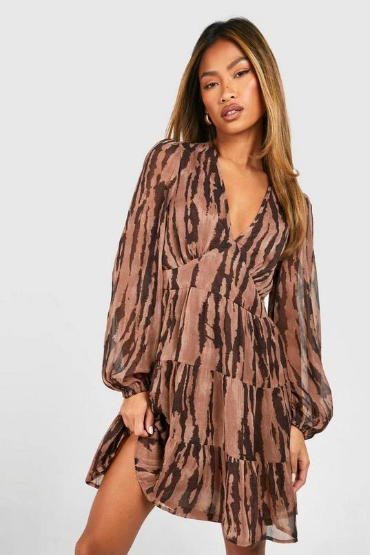 BOOHOO Animal Print Tiered Chiffon Smock Dress