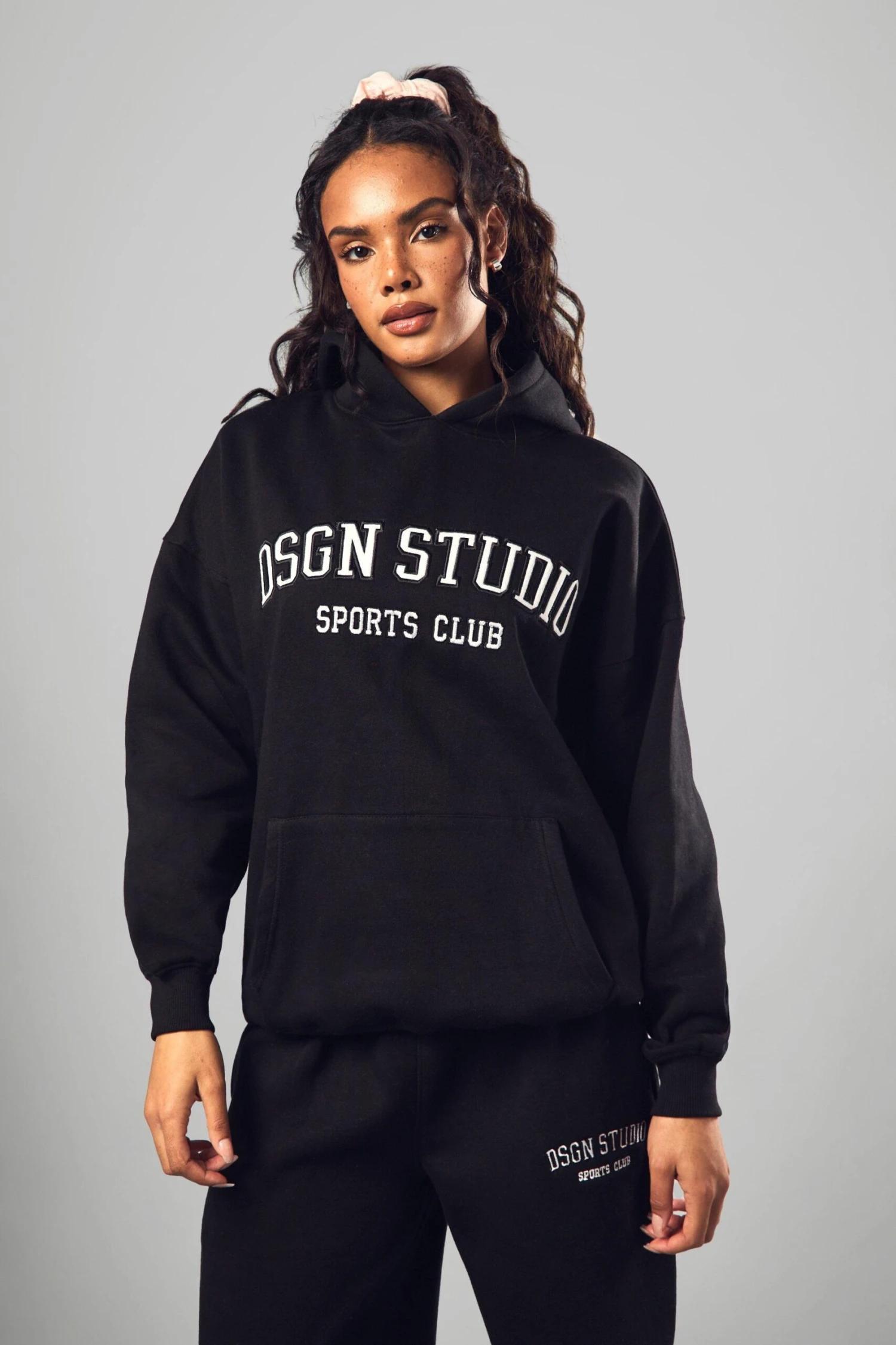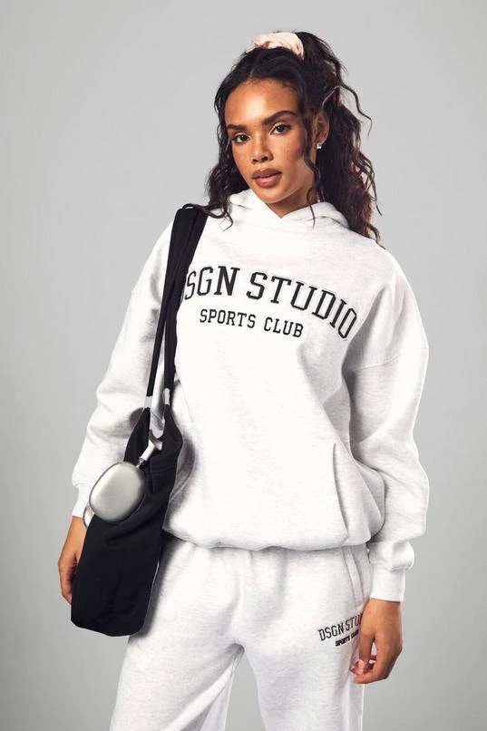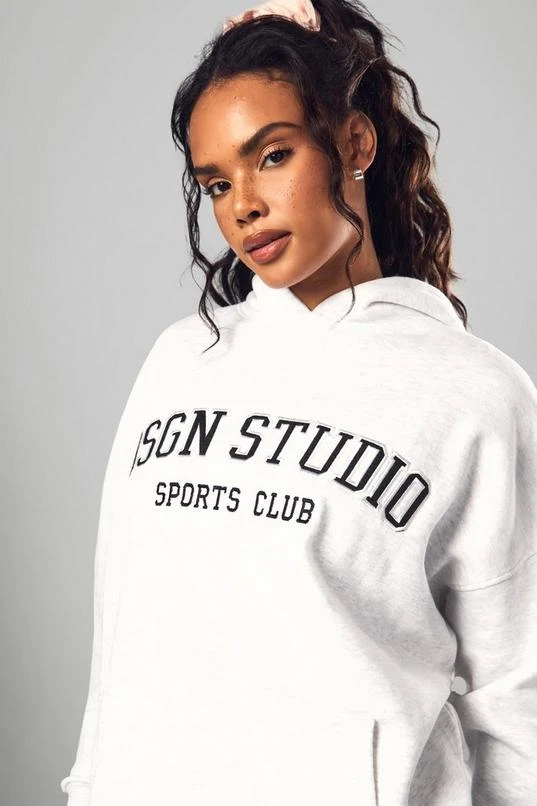 BOOHOO Ash Grey Dsgn Studio Applique Oversized Hoodie
