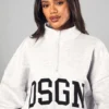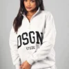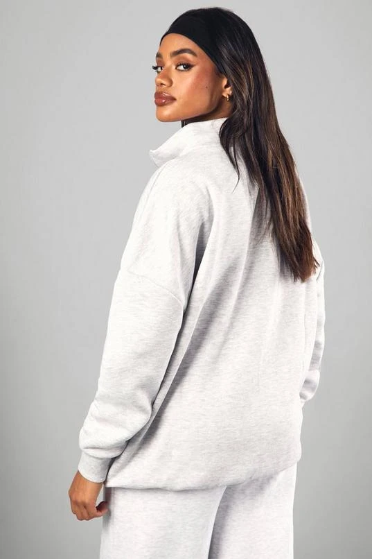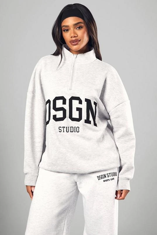 BOOHOO Ash Grey Dsgn Studio Half Zip Applique Oversized Sweatshirt