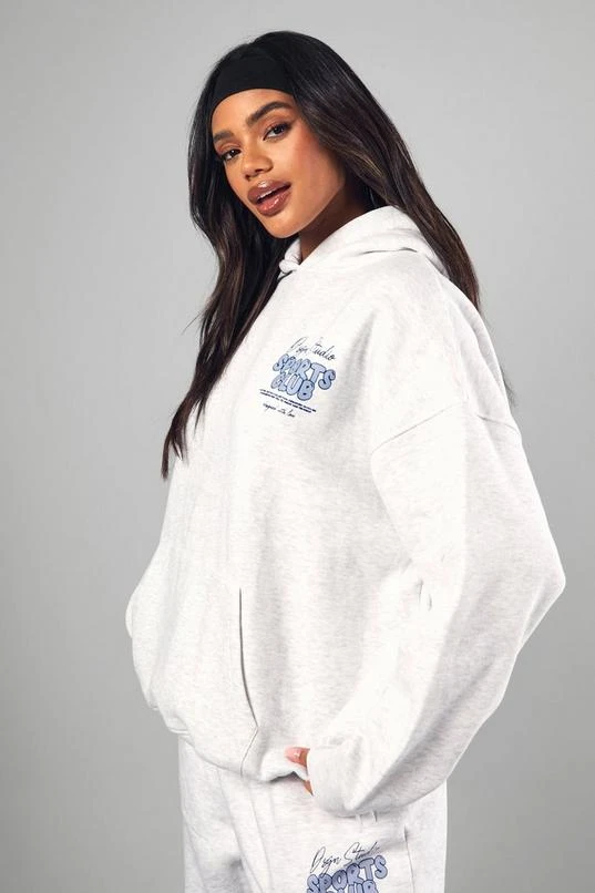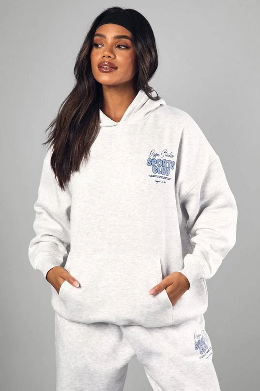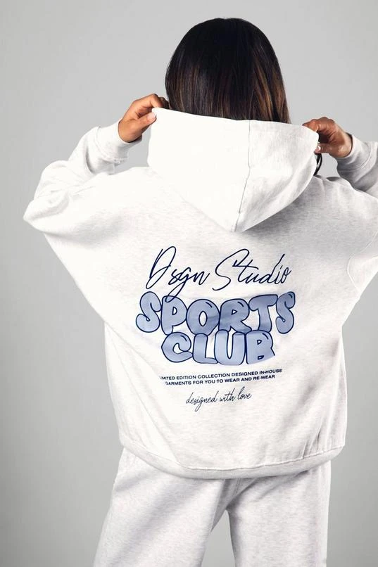 BOOHOO Ash Grey Dsgn Studio Sports Bubble Slogan Oversized Hoodie