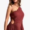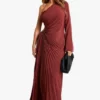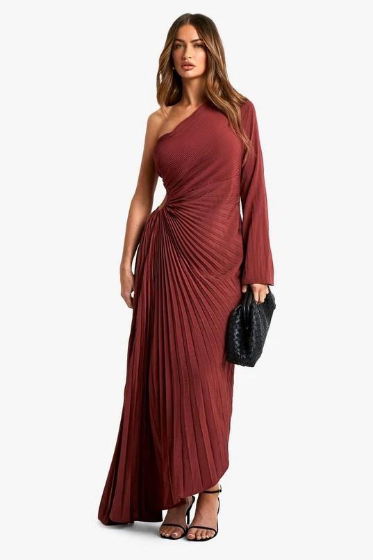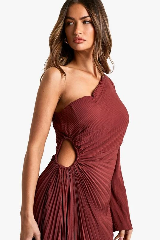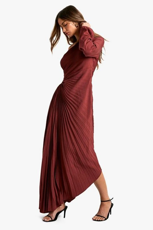 BOOHOO Asymmetric Pleated Plisse Midi Dress