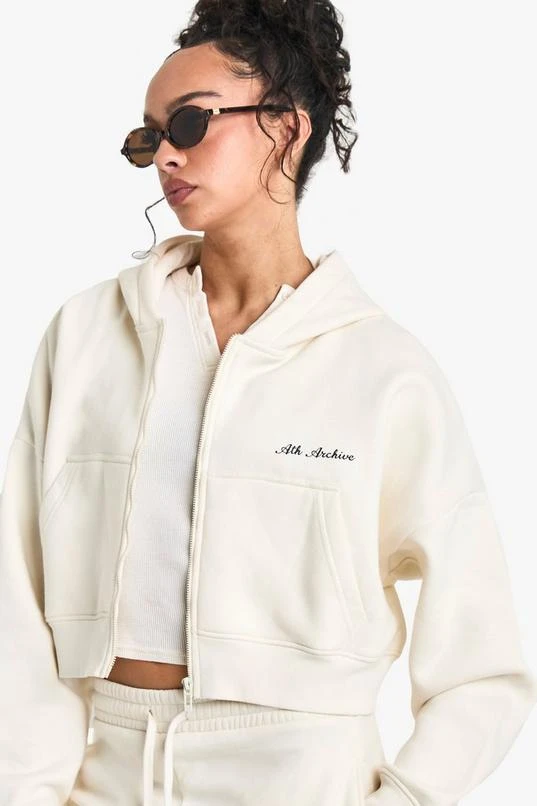 BOOHOO Ath Archive Zip Through Cropped Hoodie