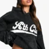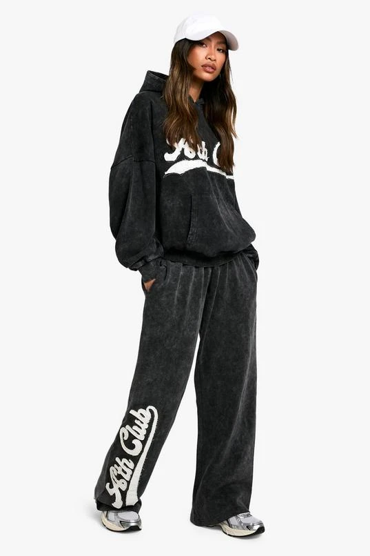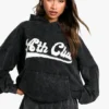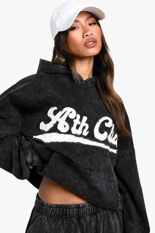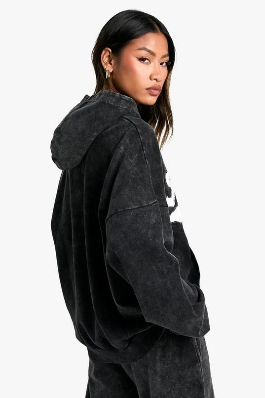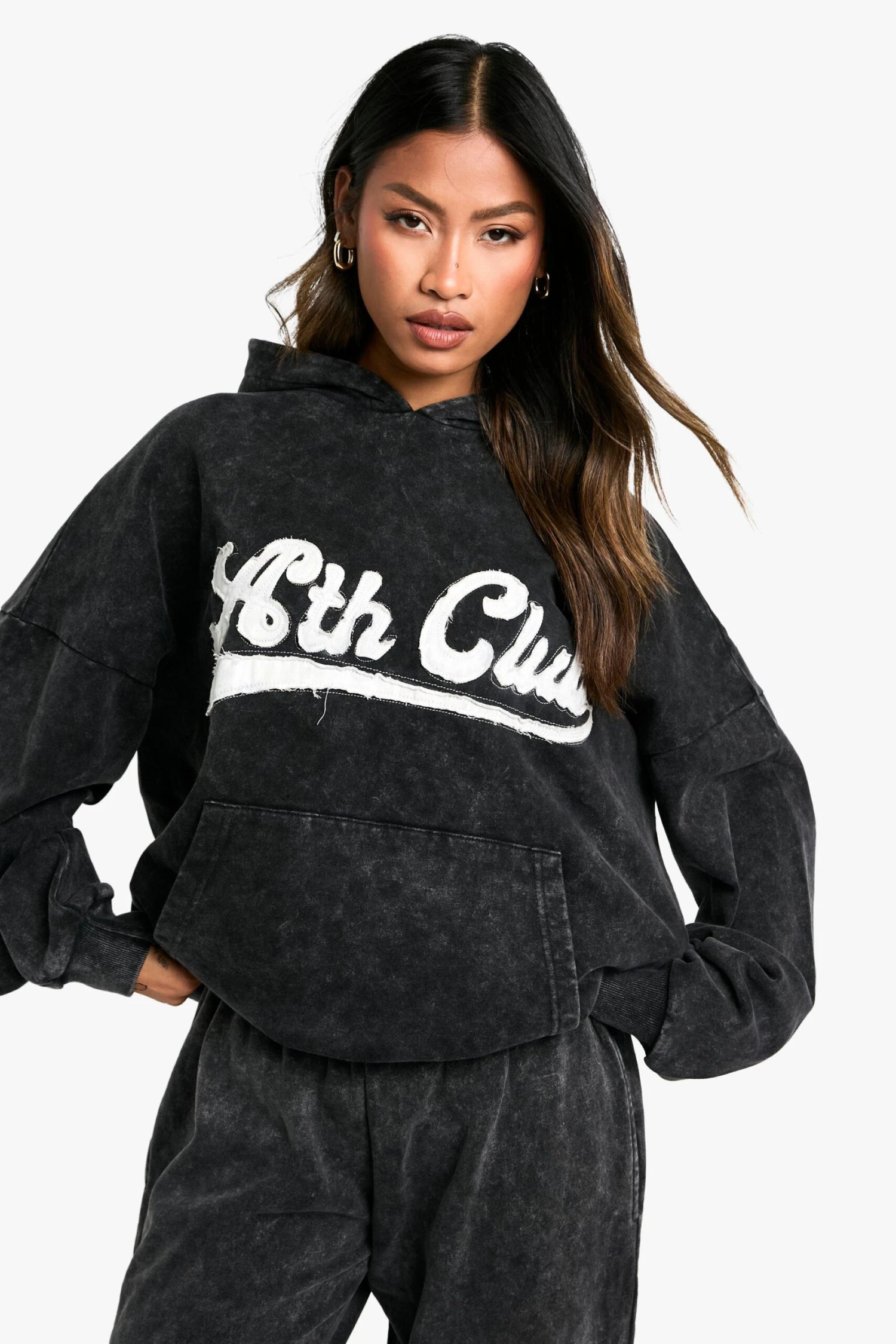 BOOHOO Ath Club Slogan Applique Acid Wash Oversized Hoodie