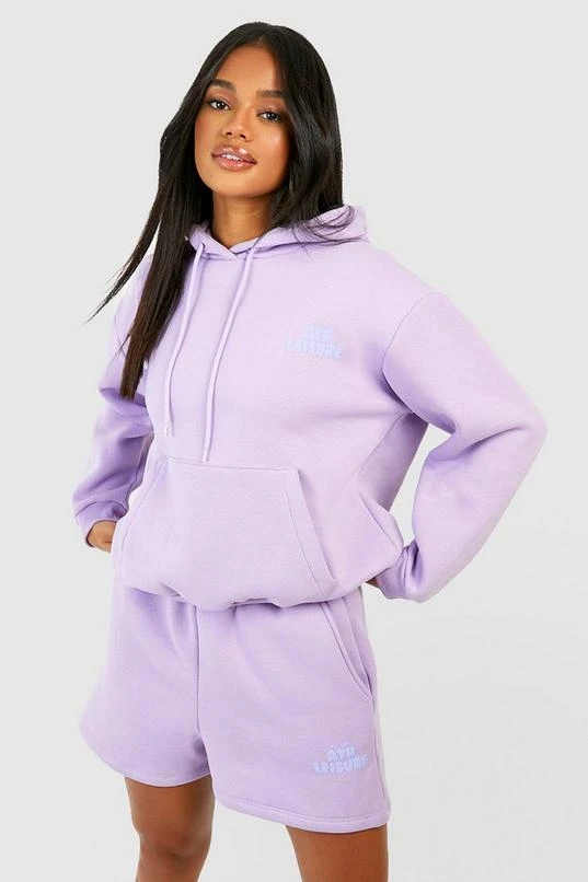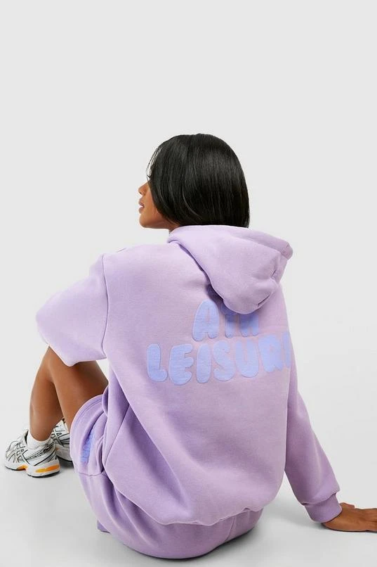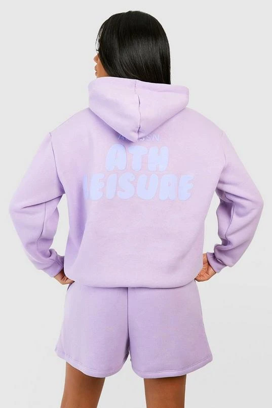 BOOHOO Ath Leisure Puff Print Slogan Hooded Short Tracksuit