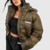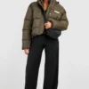 BOOHOO Badge Detail Hooded Puffer Jacket