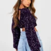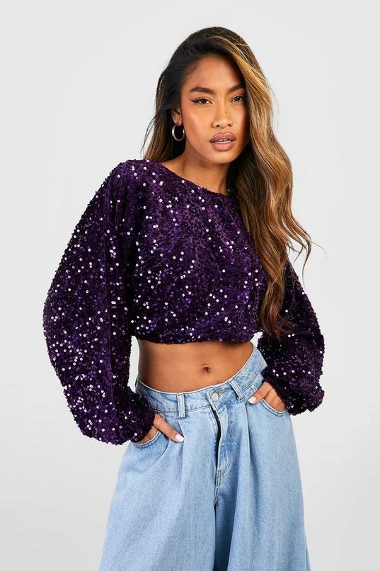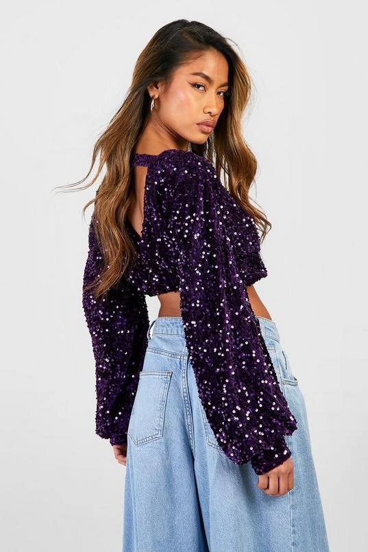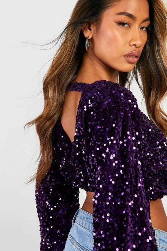 BOOHOO Balloon Sleeve Cut Out Back Sequin Top