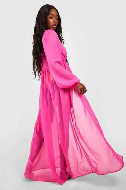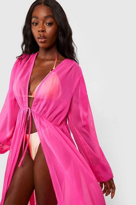 BOOHOO Balloon Sleeve Tie Beach Maxi Kimono