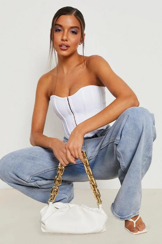 Designed to mimic the classic corset style, this corset top shapes and contours the body to create a snatched silhouette. A fitted and supportive option that accentuates the bust, this flattering, waist-defining bustier top is guaranteed to bring the heat. Pair with high-waisted denim and statement heels for weekend plans, or change up your denim for wide-leg satin pants and prepare to bring the heat. Whatever your style, this is the trending top you need in your life.