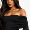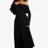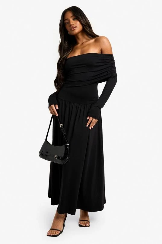 BOOHOO Bandeau Long Sleeve Drop Waist Skater Dress