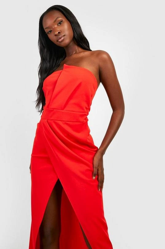 BOOHOO Bandeau Wrap Detail Split Maxi Dress
