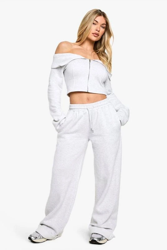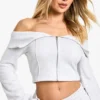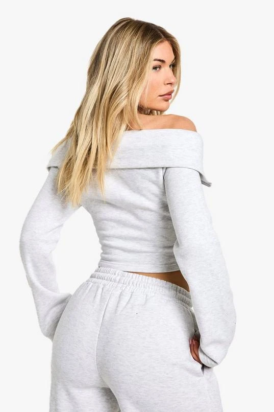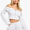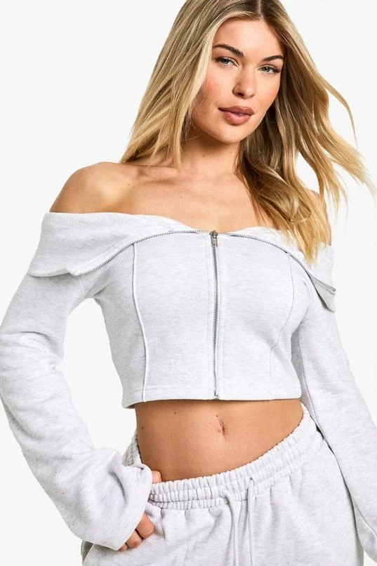 BOOHOO Bardot Long Sleeve Zip Through Sweatshirt