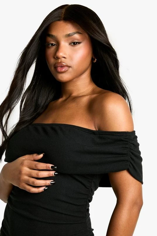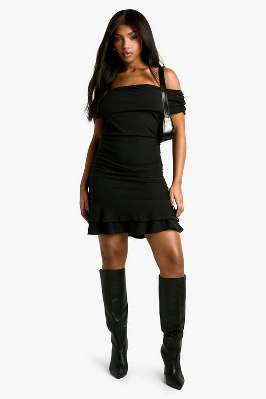 BOOHOO Bardot Ruched Mini Dress