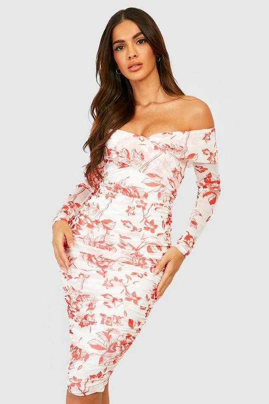 BOOHOO Baroque Mesh Off The Shoulder Midi Dress