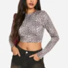 BOOHOO Basic Animal Print Cotton Long Sleeve Asymmetric Top