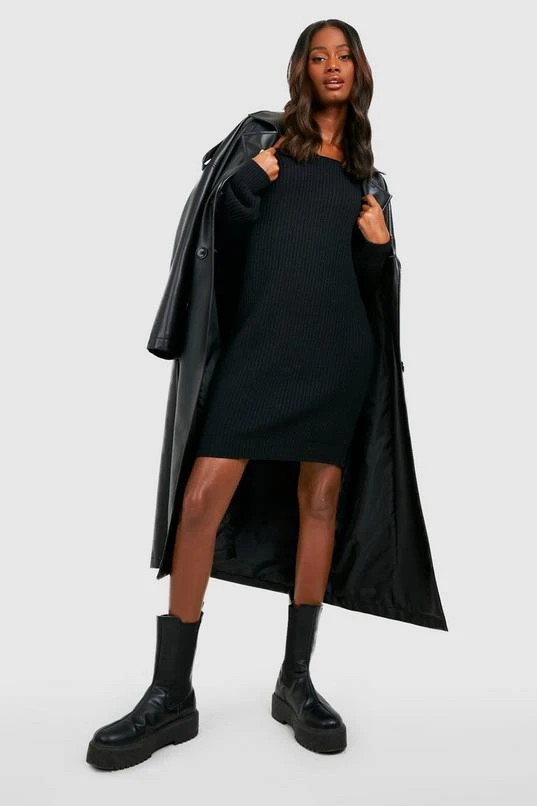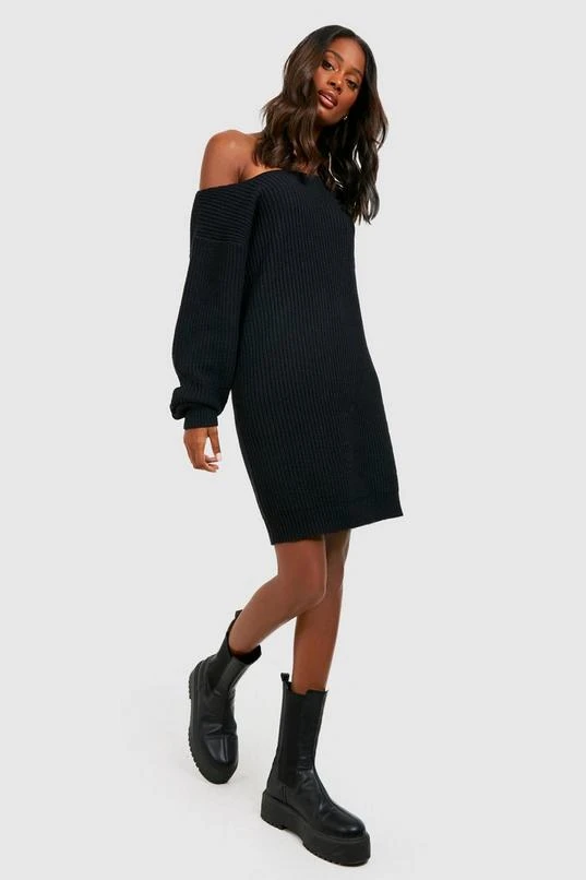 BOOHOO Basic Boat Neck Sweater Dress