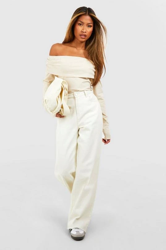 BOOHOO Basic Cotton Off The Shoulder Bodysuit