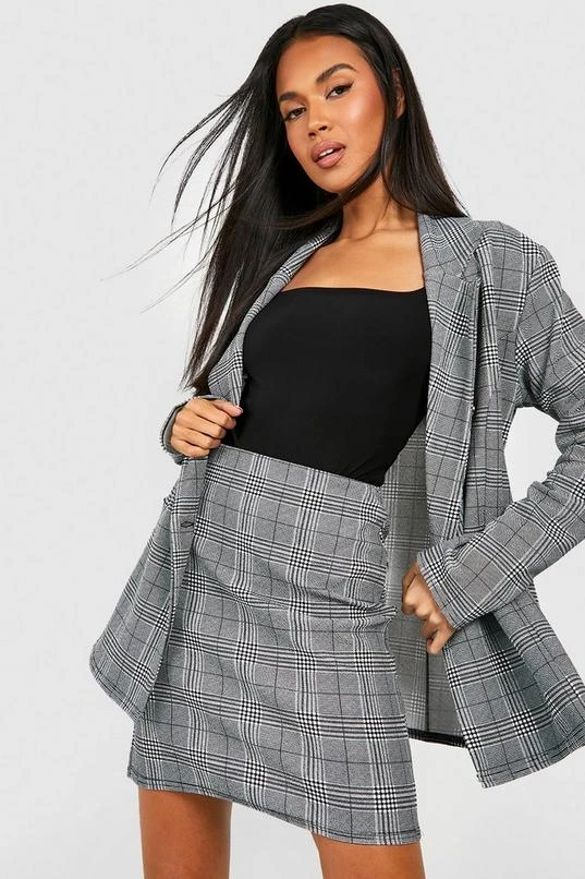 BOOHOO Basic Jersey Knit Dogtooth Mini Skirt