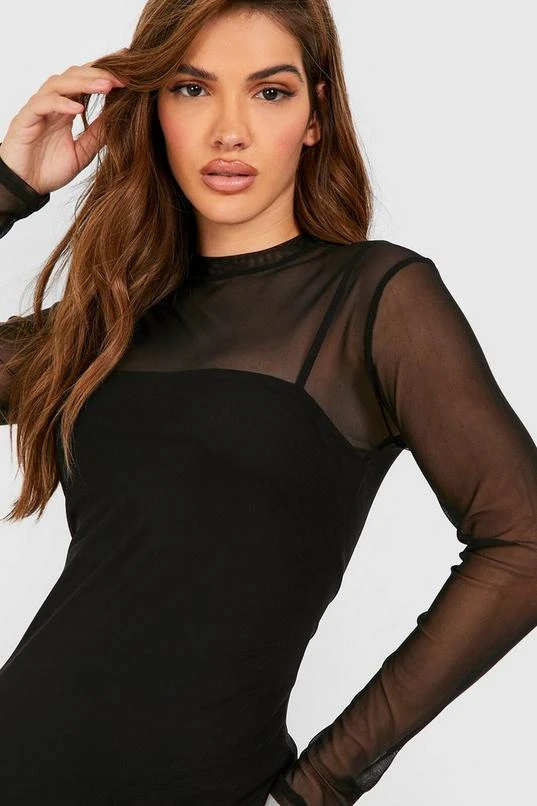 Update your going out wardrobe with this basic mesh high neck mini dress from our latest edit. Featuring a simple yet chic design with a flattering high neckline and long sleeves for added coverage, this bodycon dress is made from a lightweight mesh fabric. If you’re dressing up for a night out, team it with strappy heels and statement accessories. Keeping things casual? Try wearing it over jeans for an understated look. Either way, you’ll be serving nothing but good vibes in this dress.