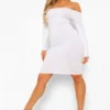 BOOHOO Basic Off The Shoulder Long Sleeve Midi Dress