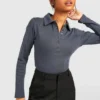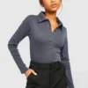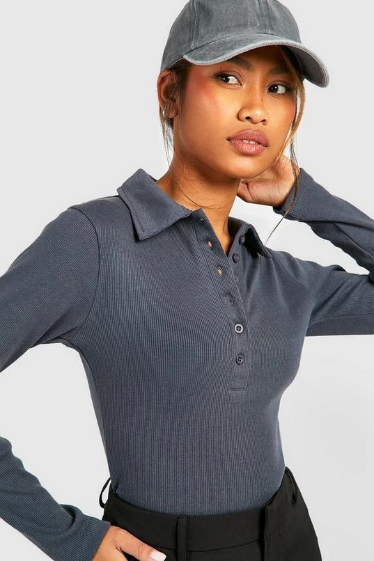 BOOHOO Basic Rib Collared Long Sleeve Bodysuit