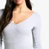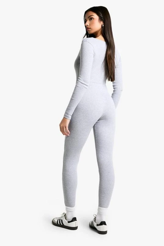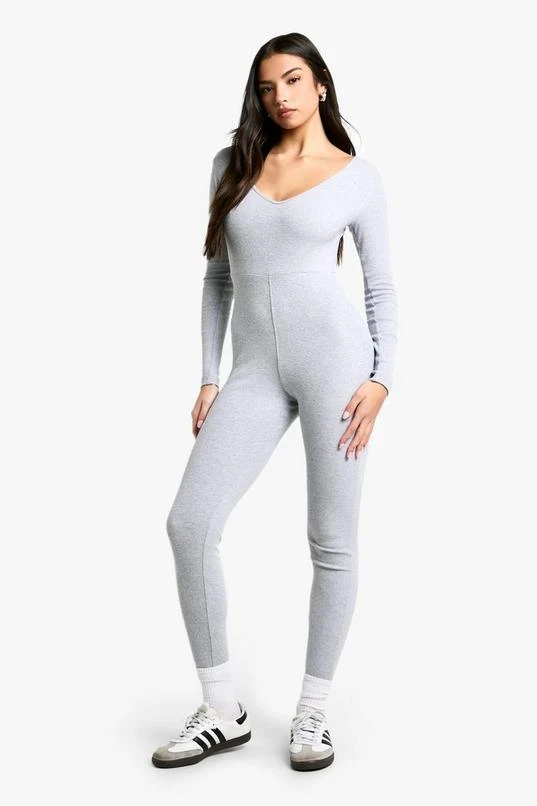 BOOHOO Basic Rib Plunge Unitard Jumpsuit