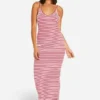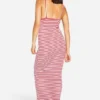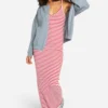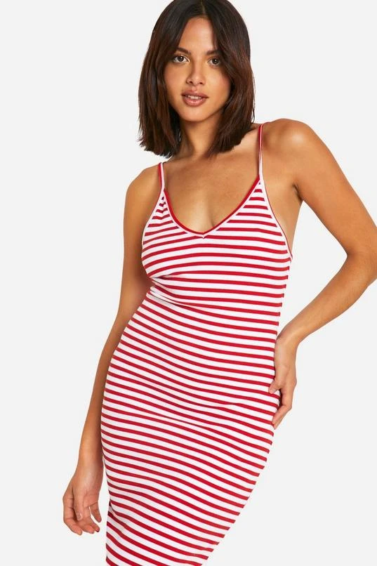 BOOHOO Basic Rib Stripe V Neck Maxi Dress