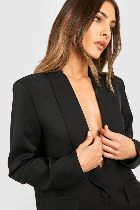 BOOHOO Basic Woven Single Breasted Plunge Lapel Blazer